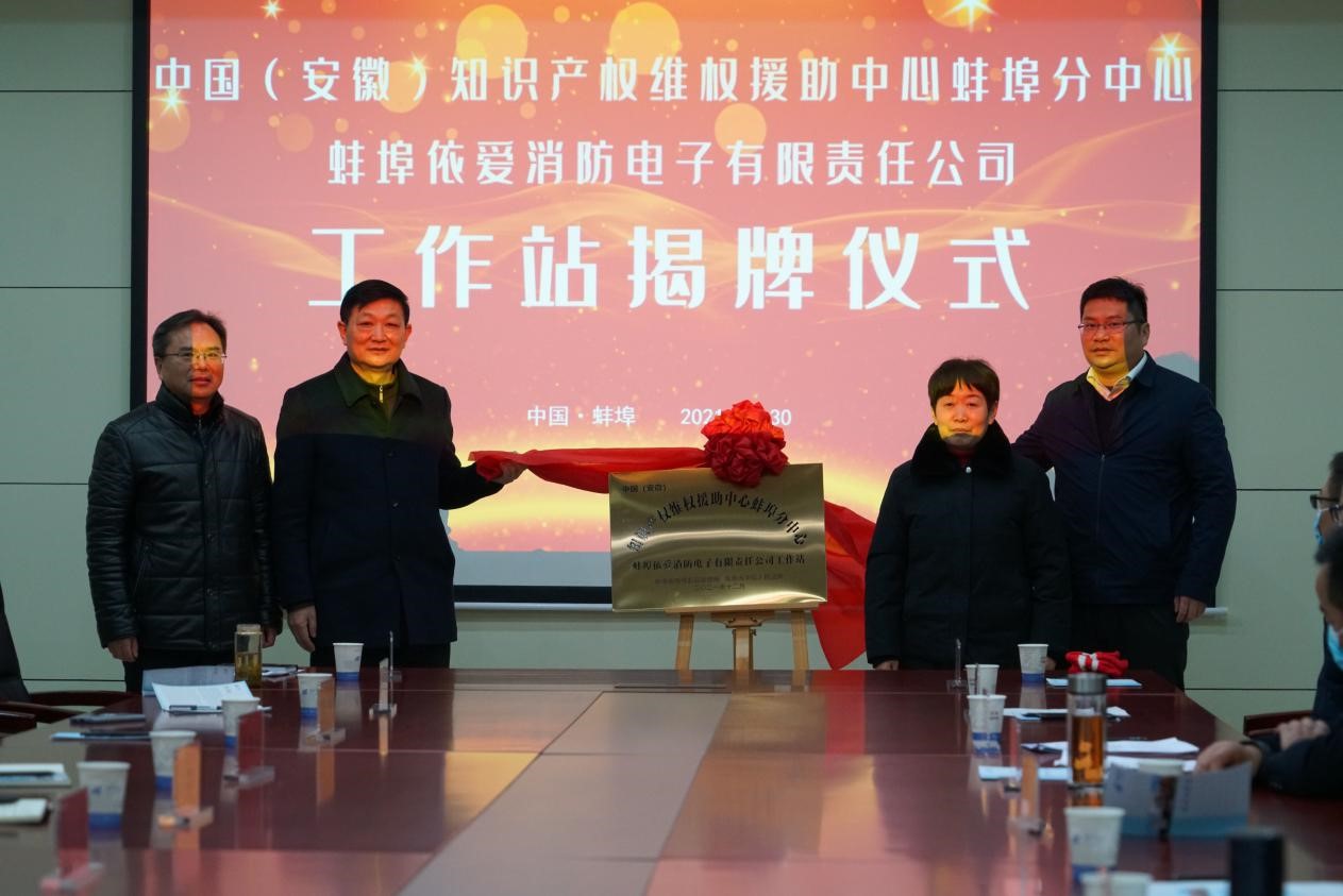 熱烈祝賀中國(guó)(安徽)知識(shí)產(chǎn)權(quán)維權(quán)援助中心蚌埠分中心蚌埠依愛(ài)消防電子有限責(zé)任公司工作站揭牌儀式圓滿成功
