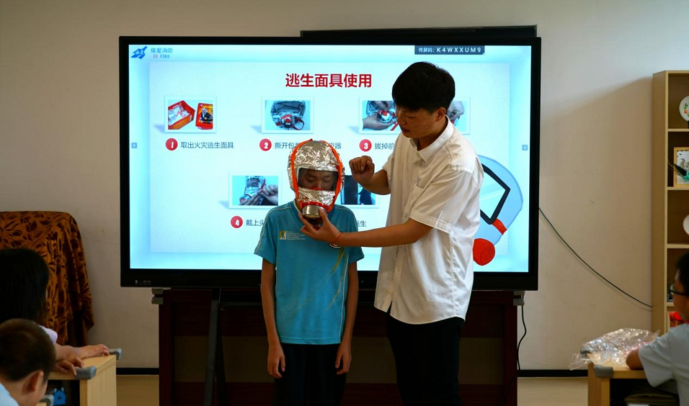 隨后,依愛消防的志愿者彭啟晗為孩子們帶來了一場(chǎng)生動(dòng)、活潑的消防安全知識(shí)講座,從教小朋友認(rèn)識(shí)消防器材、消防標(biāo)識(shí)到如何使用消防設(shè)備、預(yù)防火災(zāi)、逃生等,淺顯易懂的語言讓孩子們很快就能夠掌握這些應(yīng)知應(yīng)會(huì)的消防安全知識(shí),邊學(xué)邊互動(dòng)的有獎(jiǎng)回答讓小朋友們踴躍發(fā)言,課堂氣氛非?;钴S。在防煙防毒面具、防火毯和滅火器的演示、使用動(dòng)手環(huán)節(jié)上,孩子們爭(zhēng)先恐后、躍躍欲試。有些小朋友因?yàn)樯眢w殘疾的原因雖然不能夠去動(dòng)手實(shí)踐,但在講課環(huán)節(jié)時(shí)非常認(rèn)真地聽講,對(duì)于不懂的問題還積極提問,志愿者老師也耐心的講解。一個(gè)多小時(shí)的課程和互動(dòng)很快就過去了,孩子們依依不舍,禮貌的道別。