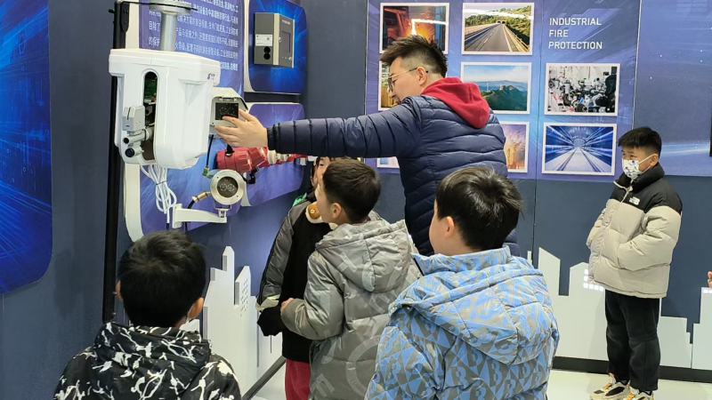 活動當(dāng)日,依愛消防技術(shù)支持部負責(zé)人王龍君負責(zé)組織接待。在接待人員的引導(dǎo)下居民和兒童步入消防設(shè)備展示區(qū)。在這里,各式各樣先進的消防產(chǎn)品整齊陳列,水炮產(chǎn)品、智慧消防、火災(zāi)報警系統(tǒng)等一一呈現(xiàn)在大家眼前。綜合管理部負責(zé)人張奇詳細為大家講解了消防公司的發(fā)展歷程,產(chǎn)品組成與作用。在模擬火災(zāi)逃生體驗區(qū),居民和兒童在工作人員的悉心指導(dǎo)下,嚴格按照正確的逃生姿勢和既定路線有序撤離,成功完成了一次逼真的模擬火災(zāi)逃生演練。通過此次演練,大家不僅熟悉了火災(zāi)發(fā)生時的應(yīng)對流程,更在實踐中鍛煉了應(yīng)急反應(yīng)能力和團隊協(xié)作能力。